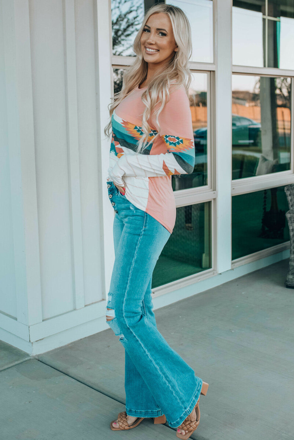 Geometric Round Neck Long Sleeve T-Shirt