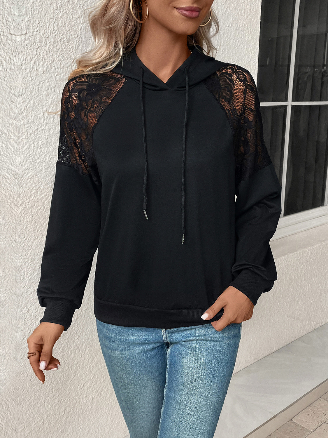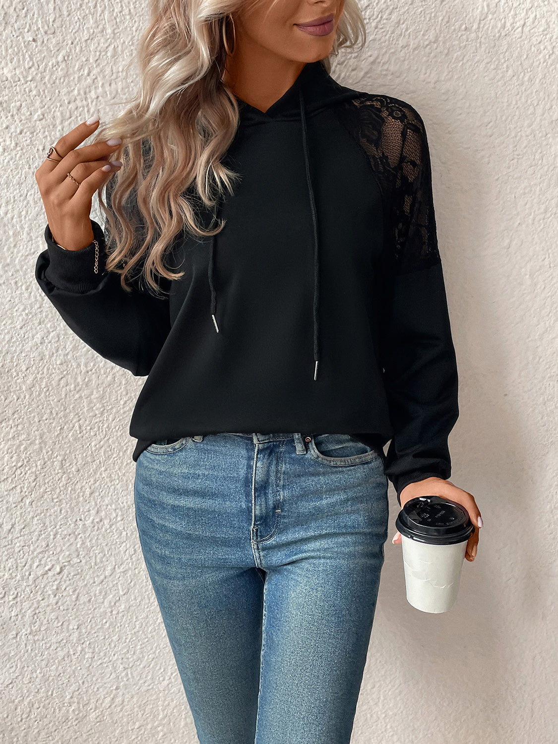 Perfee Lace Detail Drawstring Long Sleeve Hoodie
